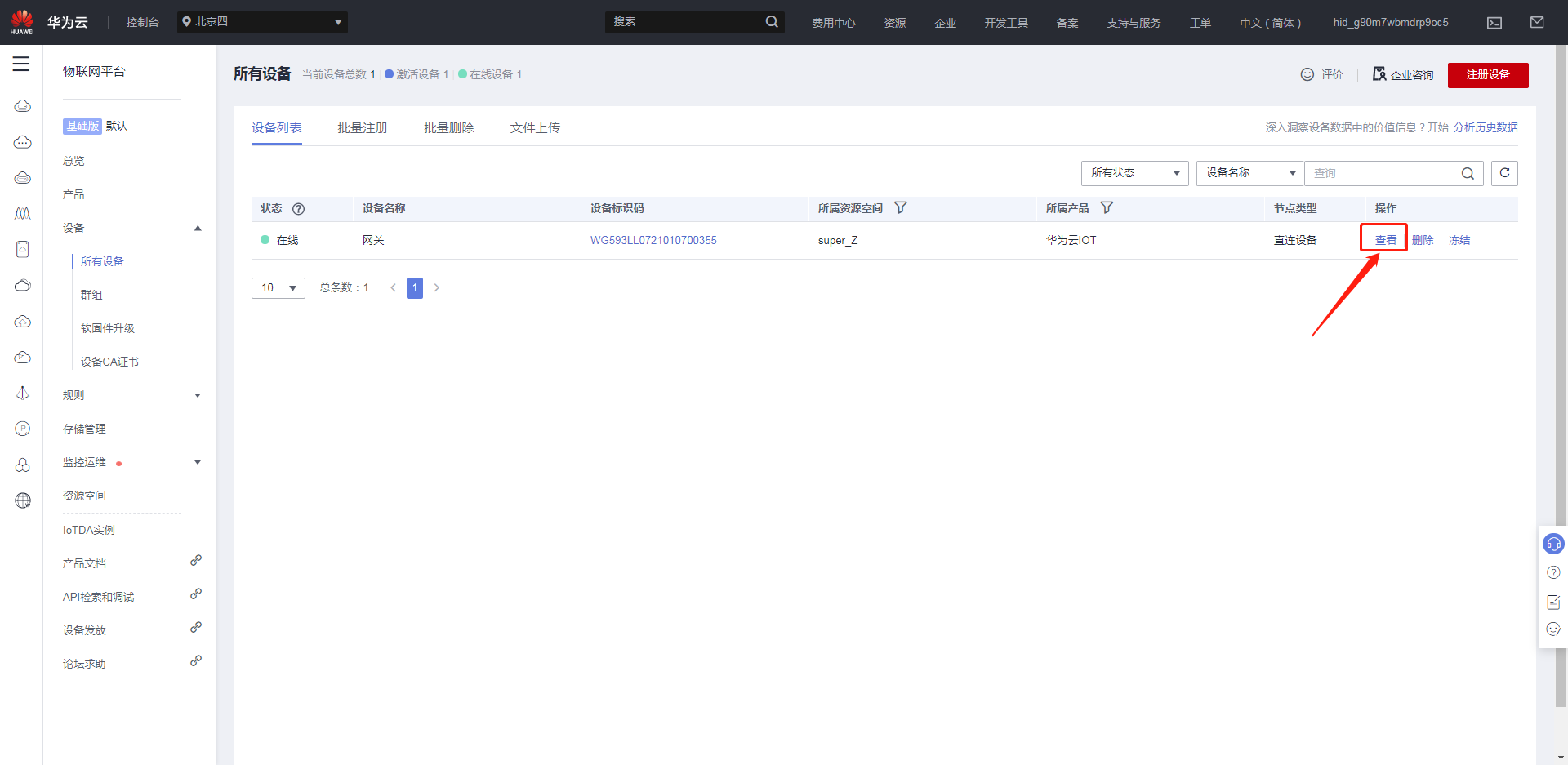 华为云地址:http://console.huaweicloud.com/iotdm/?region=cn-north-4#/dm-portal/home