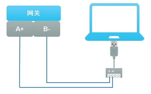 1、准备一条USB转RS485串口线,USB连接电脑,RS485串口线的A+和B-分别连接到WD140的A+以及B-,如下图: