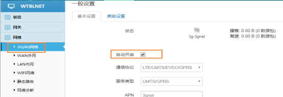 勾选自动开启,选择通信协议(静态地址、DHCP客户端、PPPOE,三选一),保存&应用。