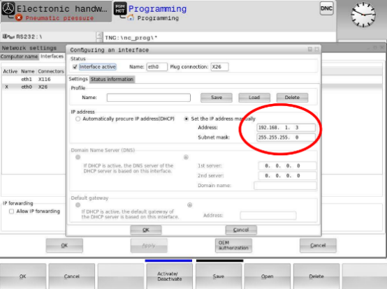 注意:数采网关LAN口地址必须与CNC IP处于同一网段且不冲突,保证网关可以Telent通CNC (IP与端口)。如果Telent不通,可查看本手册第28页“3.网关与CNC同网段配置”。