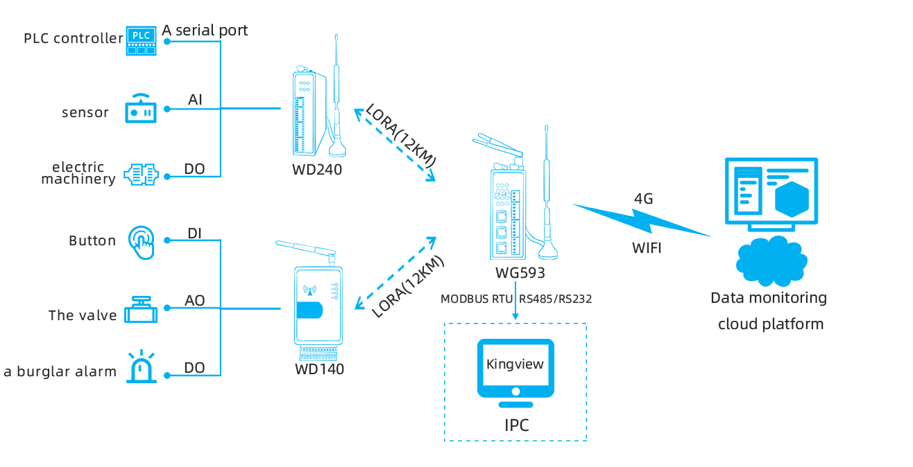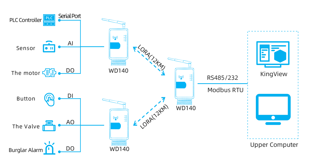 WD140-LM0211-485 (domestic frequency band: 410~493MHz LORA, 485 serial port) WD140-GM0211-485 (domestic frequency band: 4G CAT1 , 485 serial port) WD190 -LM0211-485 (domestic frequency band: 850~930MHz, 22dbm, 485 serial port) |