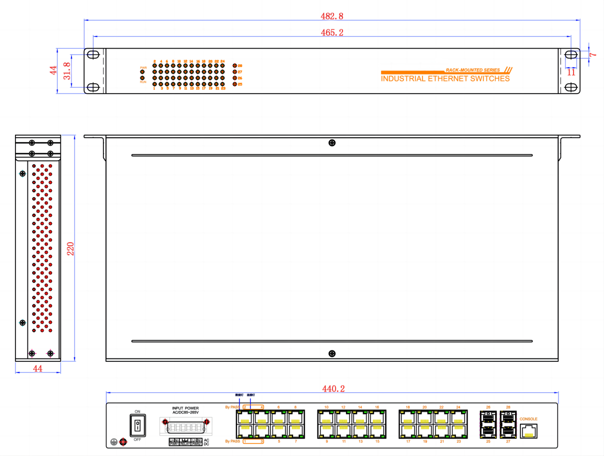 外形尺寸 | 宽×高×深:482.8×44×220mm |
