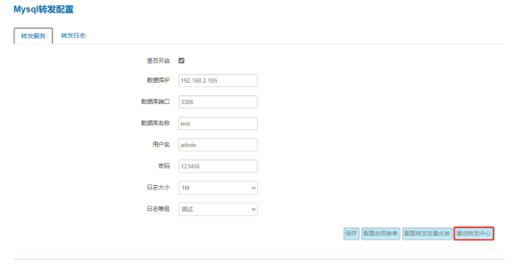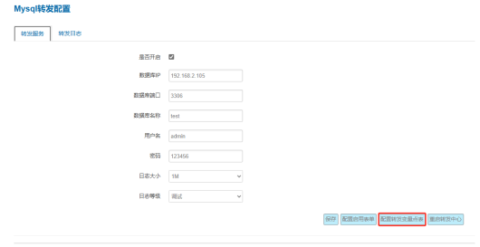 在该界面勾选以启用对应表的转发功能,并且可以设置表名称以及表头字段名称