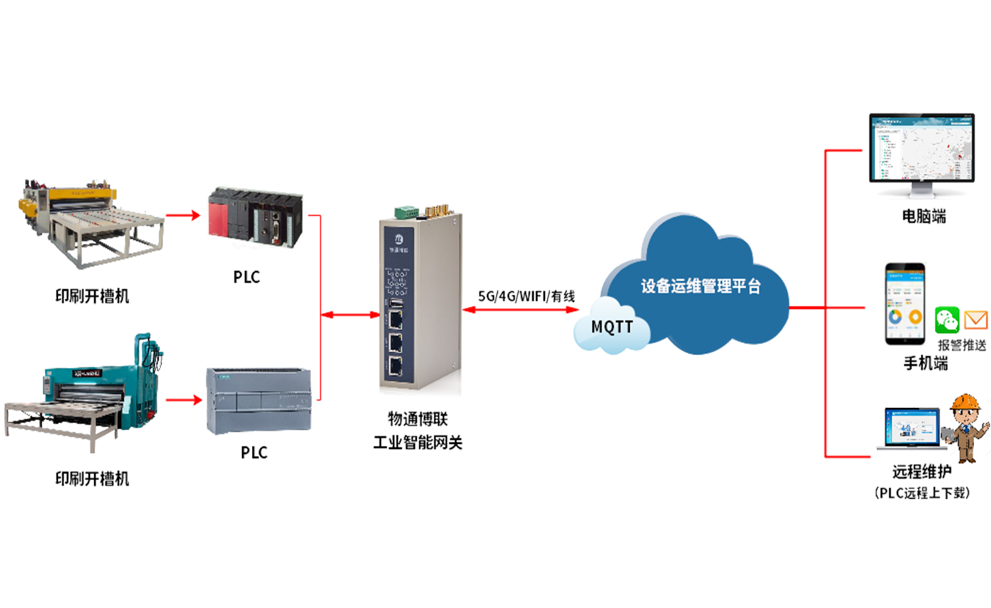 威九国际利用WG系列工业智能网关作为连接设备和监控系统的桥梁,实现印刷机械设备数据的远程监控和维护,为印刷企业给予更加智能化的印刷机械设备远程监控智能运维解决方案。