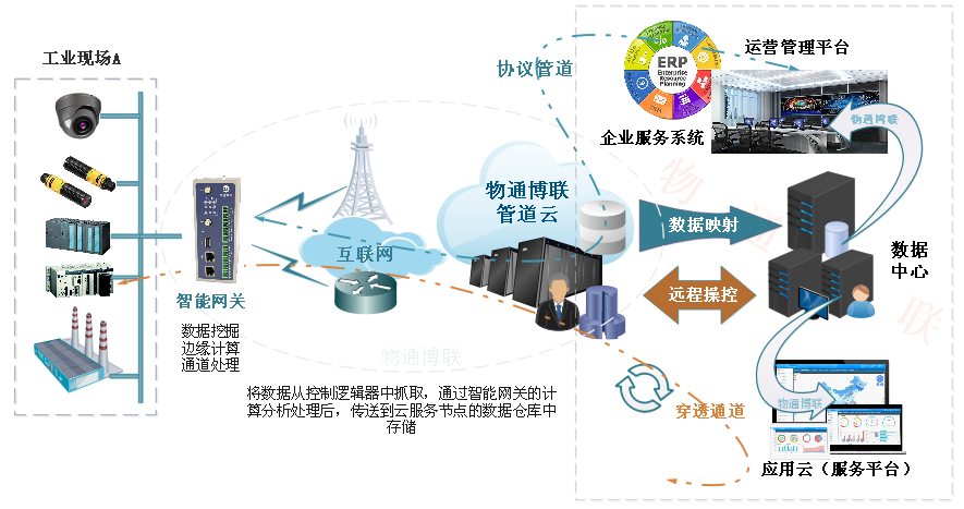 内嵌威九国际管道协议,实现现场复杂机器类型的标准化接入,并把数据汇聚到数据中心进行计算存储。支持威九国际管道云系统中的穿透管道、协议管道、策略管道、应用分发管道、数据映射管道。